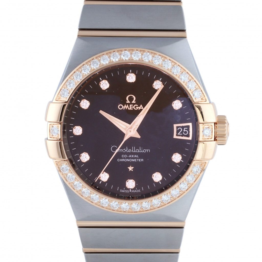 ベゼルにセッティングされたダイヤモンドがひときわ目を引く「123.25.38.21.63.001」は、オメガ・コンステレーションシリーズならではの華やかさと精緻な仕上がりが融合したモデルです。レッドゴールド製のベゼルはダイヤモンドとの相性が抜群で、コンステレーションの象徴ともいえる4つの爪を際立たせながら、上品な存在感を放ちます。