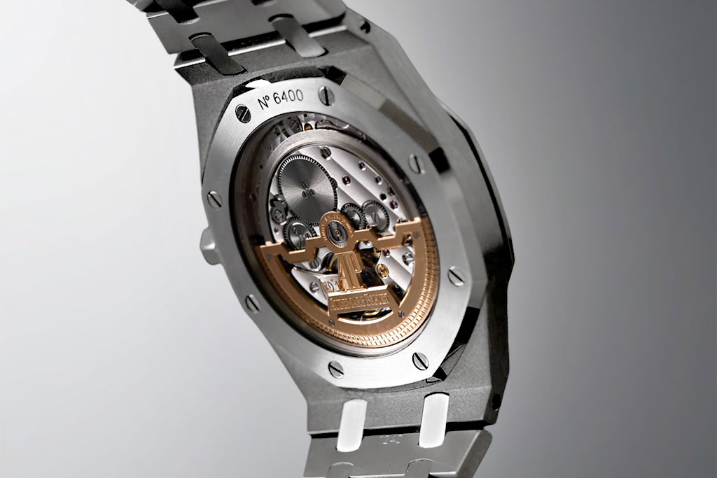 ケースサイズは初代ロイヤルオークよりも一回り大きい41mmを採用し、現代的なボリューム感を演出。さらに、複雑機構であるトゥールビヨンを搭載しながら、全体の厚みをわずか9mmに抑えている点は特筆に値します。この薄さは、厚さ4.46mmのムーブメントCal.2924によって可能となり、繊細な技術と審美性が見事に融合した仕上がりとなっています。
