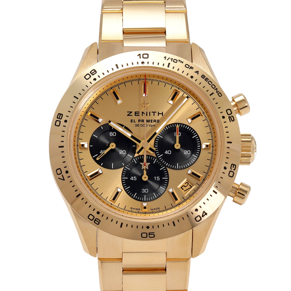 文字盤には、柔らかく艶やかなシャンパンカラーを採用。ゼニスを象徴する3色インダイヤルが美しく調和し、スポーティな機能性とクラシカルな趣を見事に融合させています。さらに日付表示機能も備え、日常使いにも配慮されたバランスの良さも魅力のひとつ。