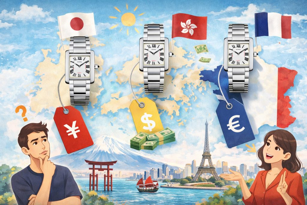 カルティエの時計価格は、主に「為替」「税制度」「地域別価格戦略」の3要素で決まります。