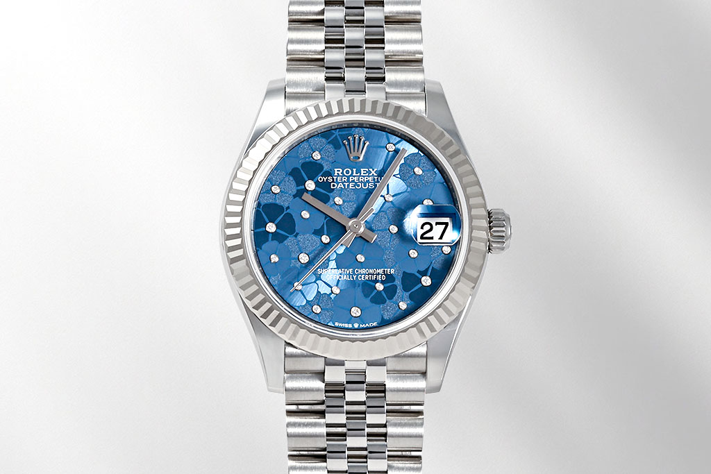 ロレックスにはさまざまなコレクションがありますが、レディース向けのモデルには文字盤の種類が豊富だという特徴があります。文字盤カラーがあわせやすいシンプルな無地のものだけでなく、女性向けの華やかなモチーフを施したものなどから選べるため、シーンにあわせて選べるのも魅力の一つ。
