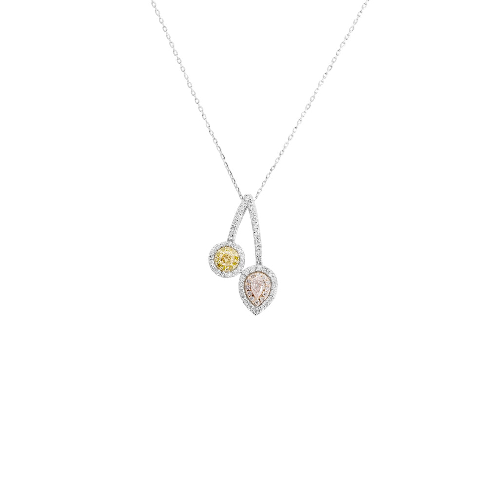 プラチナ900 K18イエローゴールド K18ピンクゴールド ピンクダイヤ イエローダイヤ ダイヤモンド ネックレス