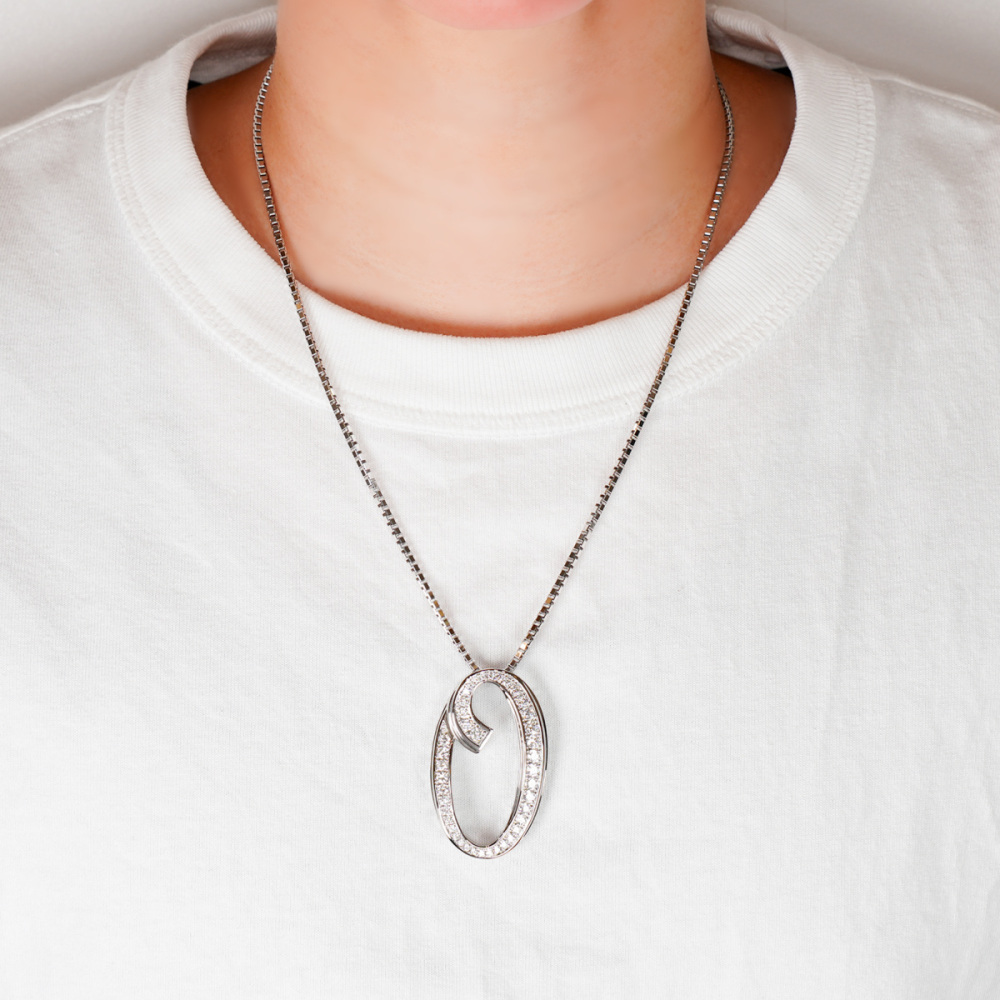 数字の「0」をモチーフにした大きめペンヘッドです。普通の大きさでは物足りない、胸元に大きなアクセントが欲しい方にピッタリです。質の良い3カラット分のダイヤモンドを贅沢に使用しております。