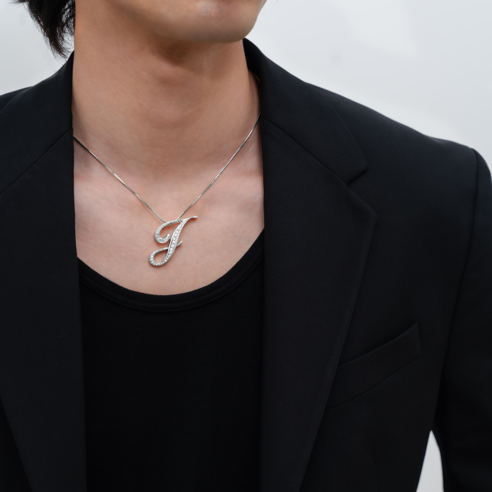 「ゆきざき」のジュエリーを語るうえで最も象徴的なモデルで、熟練の職人が一つひとつ丁寧に手作業で仕上げるアルファベットのデザインと上質なダイヤモンドを融合させたペンダントトップ「アルファ」。