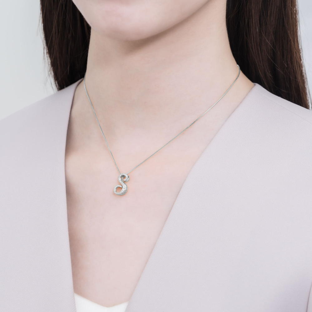 「ゆきざき」のジュエリーを語るうえで最も象徴的なモデルで、職人が1つ1つ手作業で作る数字とアルファベットのデザインと上質なダイヤモンドを融合させたペンダントトップ「ノンブル」。