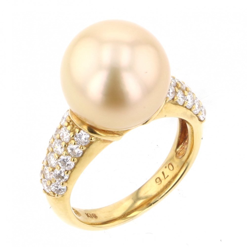 K18イエローゴールド 白蝶パール ダイヤモンド リング