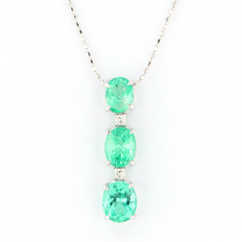K18ホワイトゴールド エメラルド ダイヤモンド ネックレス