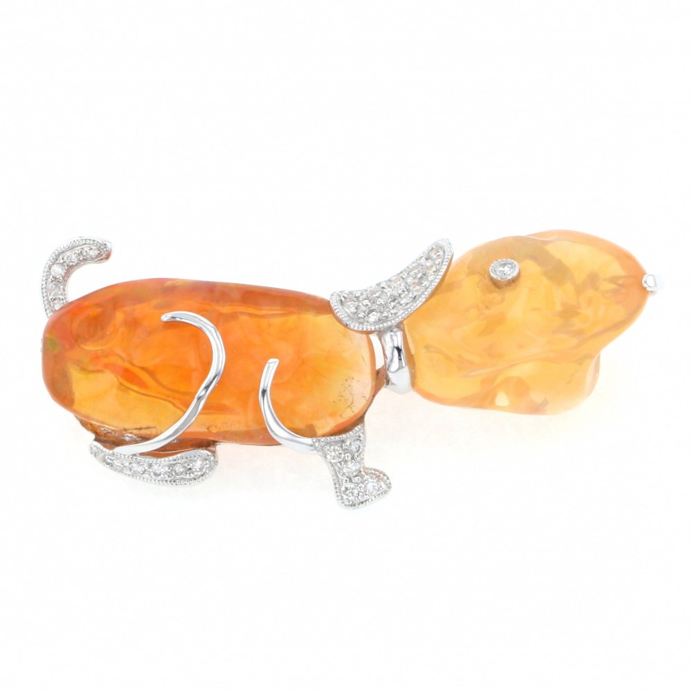 K18ホワイトゴールド オパール ダイヤモンド ブローチ