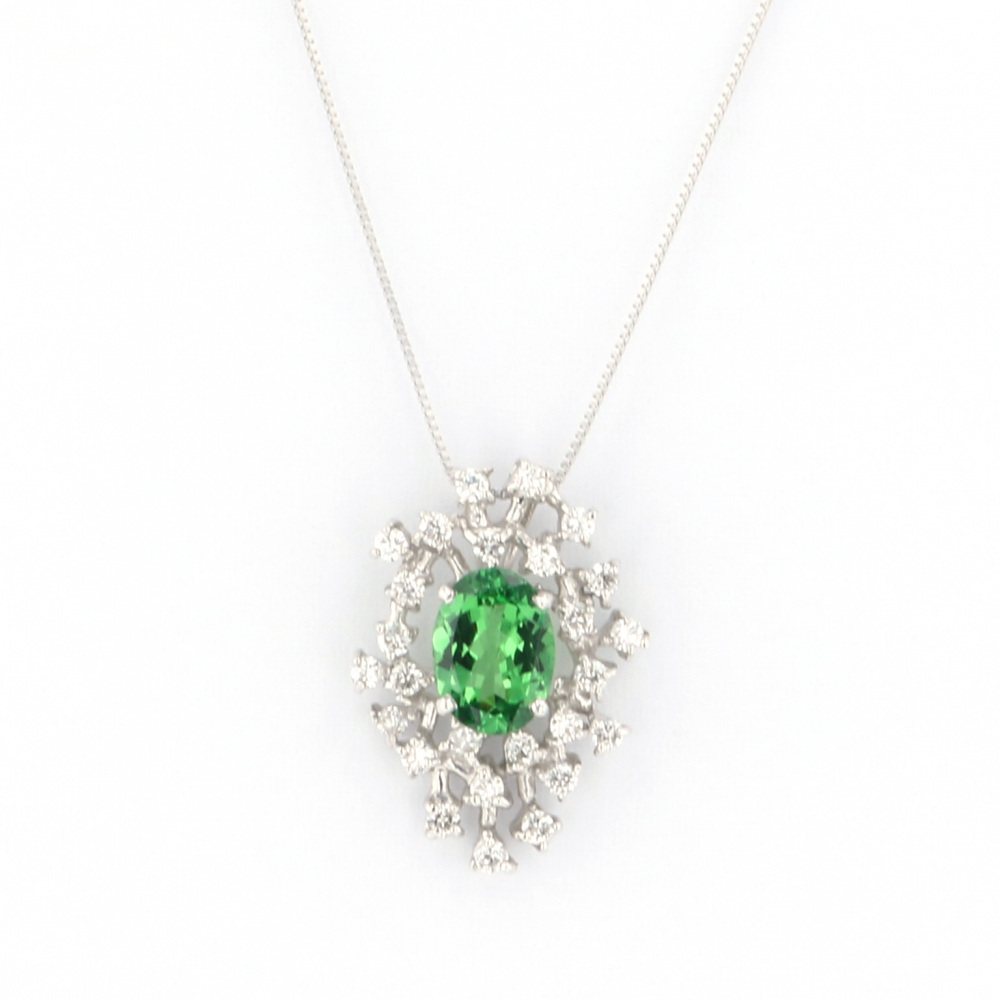 K18ホワイトゴールド ガーネット ダイヤモンド ネックレス