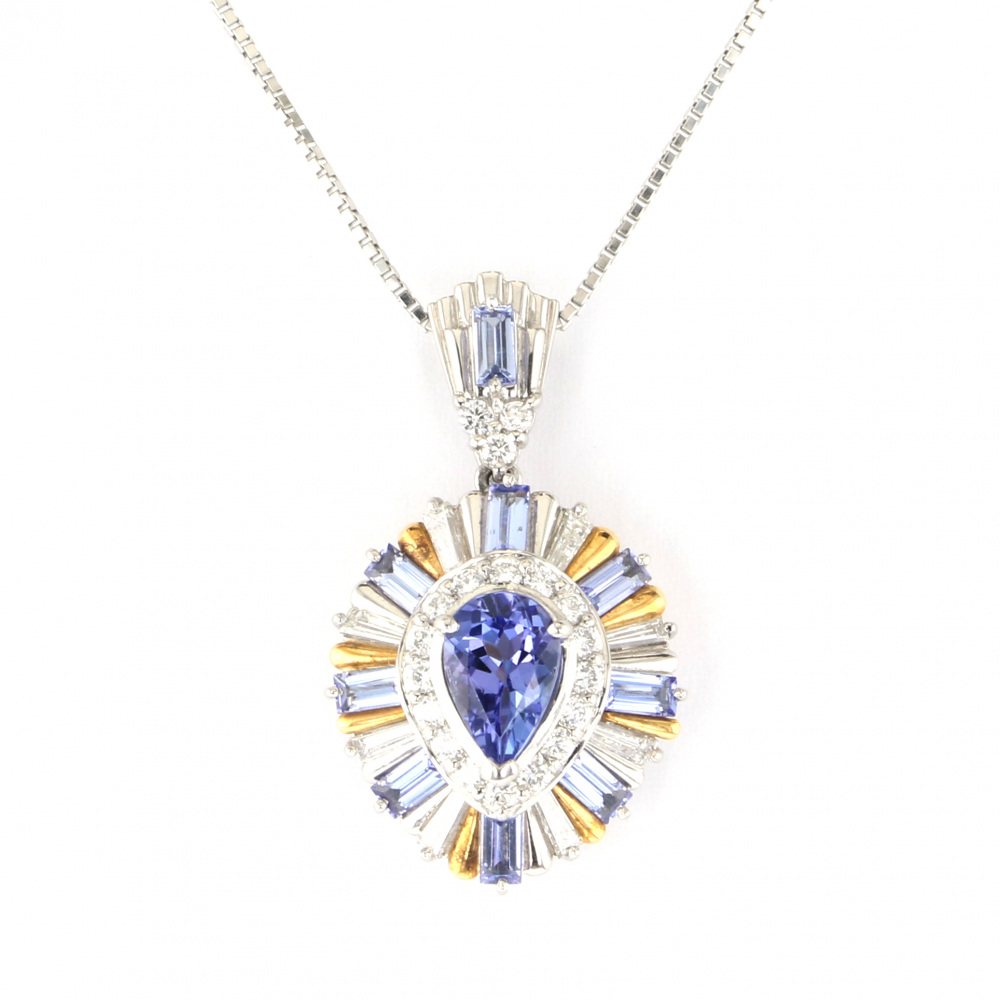 プラチナ K18イエローゴールド タンザナイト ダイヤモンド ネックレス