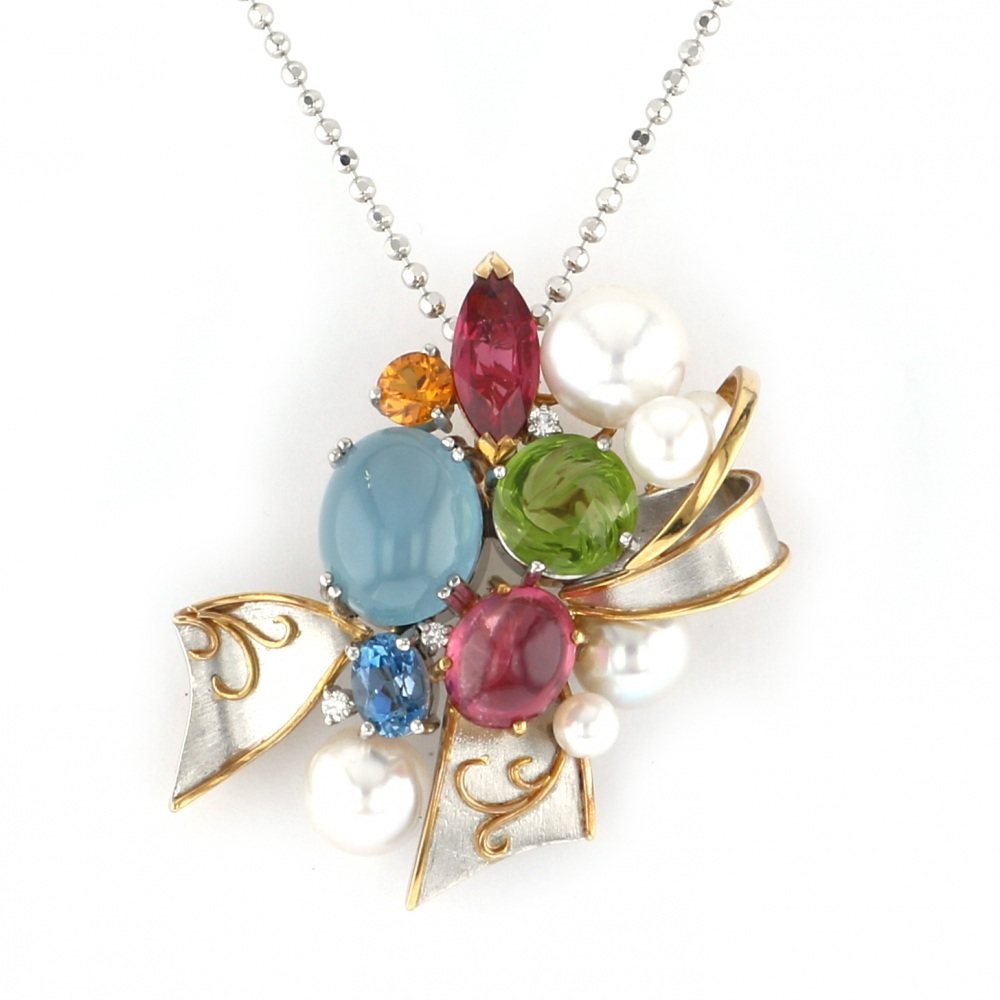 プラチナ K18イエローゴールド K18ホワイトゴールド マルチカラー ブローチ