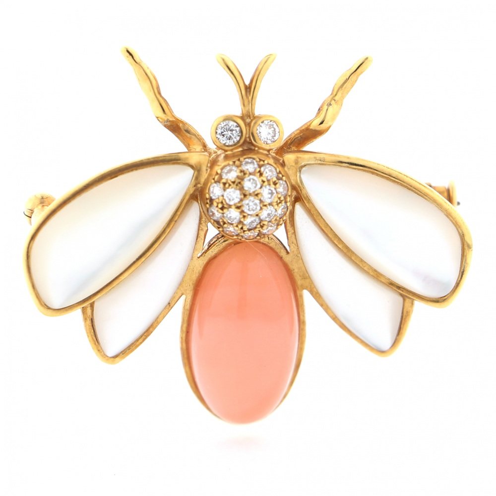 K18イエローゴールド サンゴ ダイヤモンド ブローチ