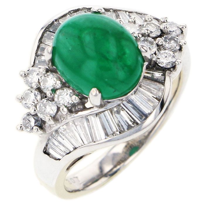 鮮やかな緑色の輝きが特徴のエメラルド(5月の誕生石)は、和名で「翠玉」や「緑玉」と呼ばれ、癒しと愛を象徴する宝石です。透明度が高く、色味が均一で濃いエメラルドほど価値が高いとされます。また、エメラルドはインクルージョン(内包物)が多い石として知られており、これを「ジャルダン(庭)」と呼び、天然の証としてむしろ価値とされています。クレオパトラが愛した宝石としても有名です。