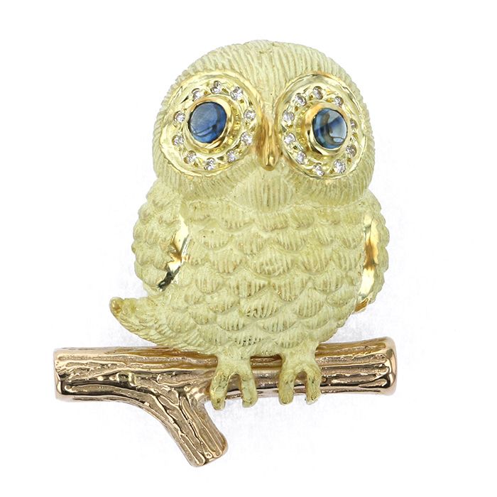 K18イエローゴールド サファイア ダイヤモンド ブローチ