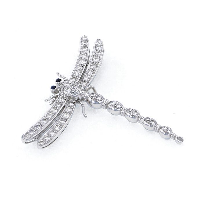K18ホワイトゴールド ダイヤモンド サファイア ブローチ
