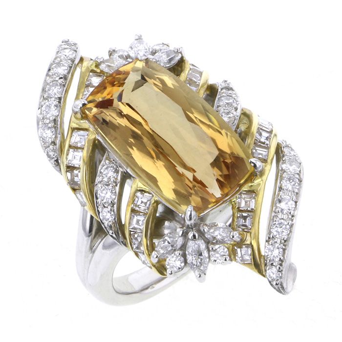 プラチナ K18イエローゴールド トパーズ ダイヤモンド リング