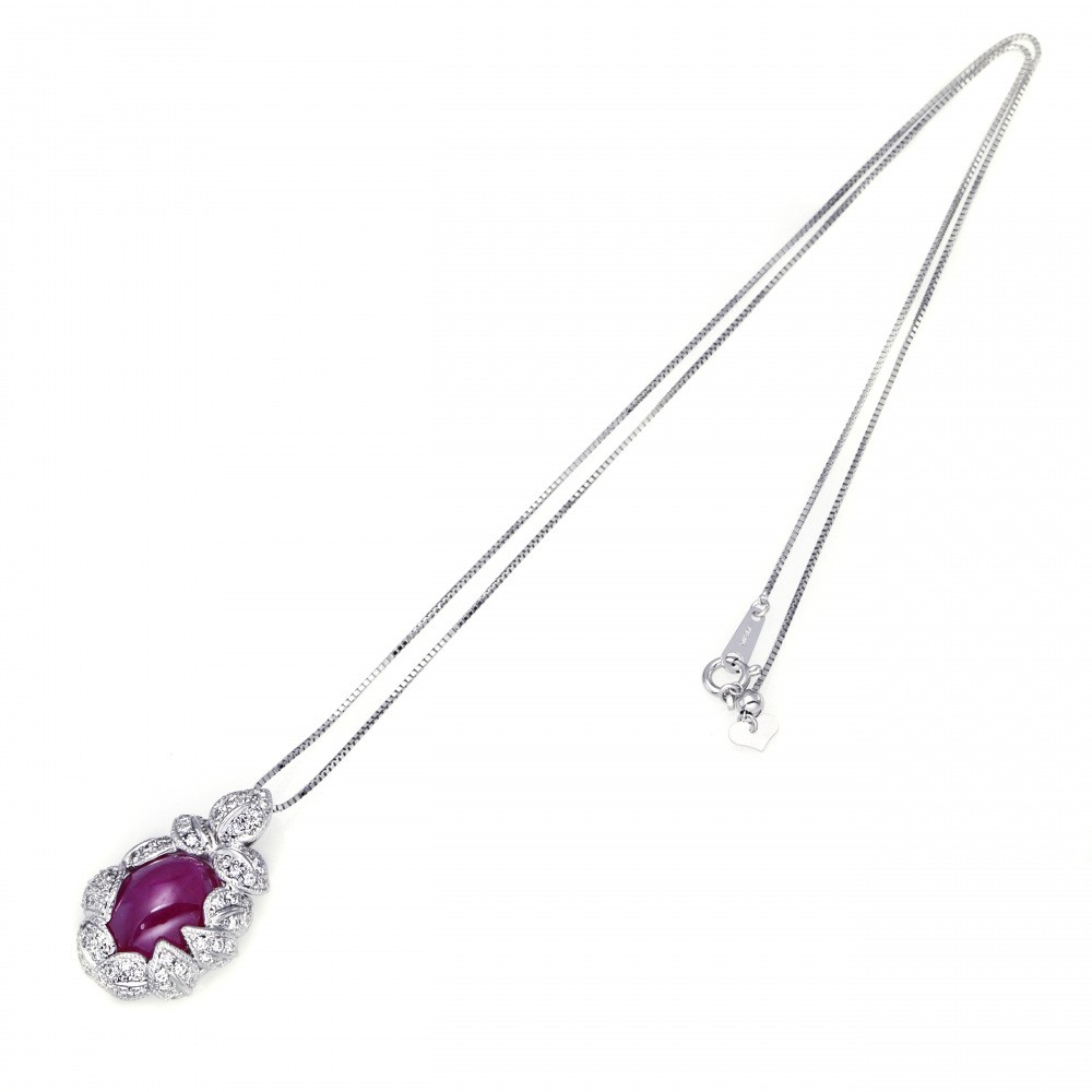 K18ホワイトゴールド ルビー ダイヤモンド ネックレス