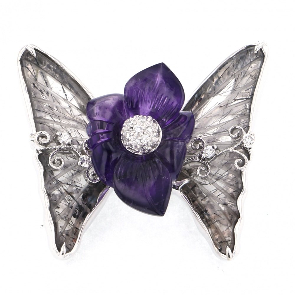K18ホワイトゴールド アメシスト クォーツ ダイヤモンド ブローチ