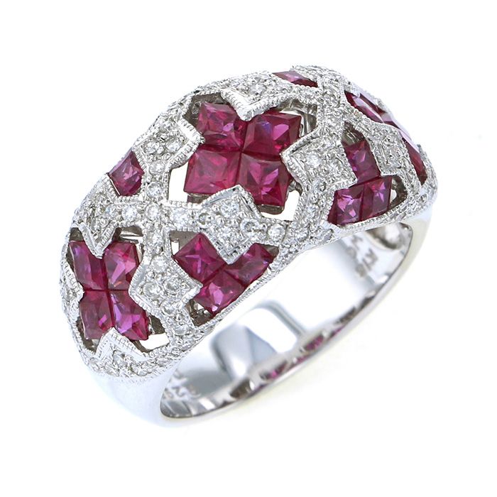 K18ホワイトゴールド ルビー ダイヤモンド リング