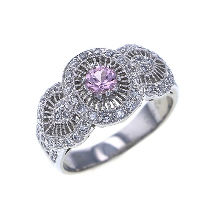 プラチナ900 パパラチヤサファイア ダイヤモンド リング