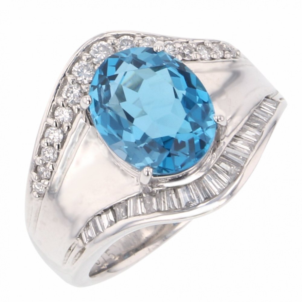 プラチナ900 ブルートパーズ ダイヤモンド リング