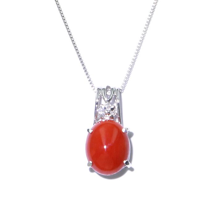 K18ホワイトゴールド サンゴ ダイヤモンド ネックレス