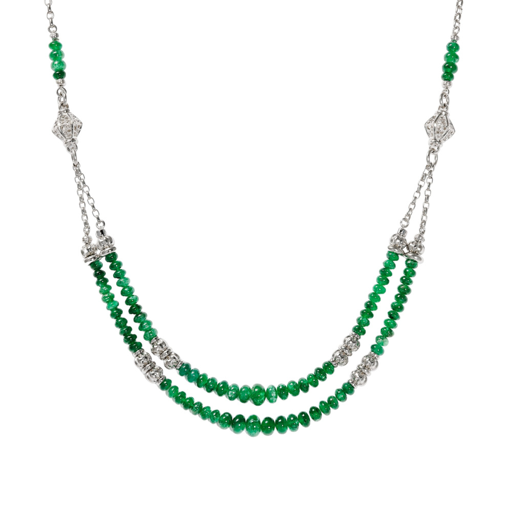 鮮やかな緑色の輝きが特徴のエメラルド(5月の誕生石)は、和名で「翠玉」や「緑玉」と呼ばれ、癒しと愛を象徴する宝石です。透明度が高く、色味が均一で濃いエメラルドほど価値が高いとされます。また、エメラルドはインクルージョン(内包物)が多い石として知られており、これを「ジャルダン(庭)」と呼び、天然の証としてむしろ価値とされています。クレオパトラが愛した宝石としても有名です。