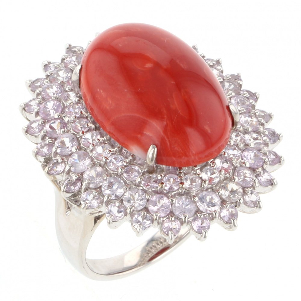 K14ホワイトゴールド サンゴ ダイヤモンド リング