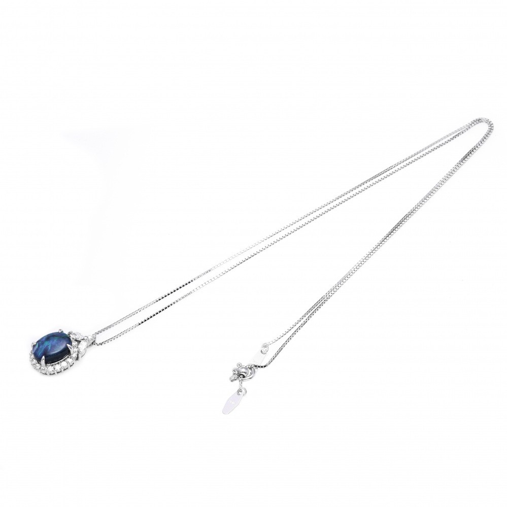 K18ホワイトゴールド ブラックオパール ダイヤモンド ネックレス