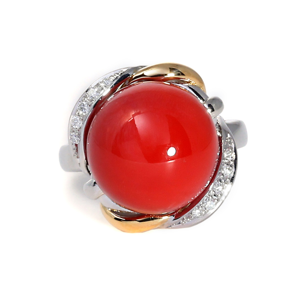 プラチナ900 K18イエローゴールド サンゴ ダイヤモンド リング