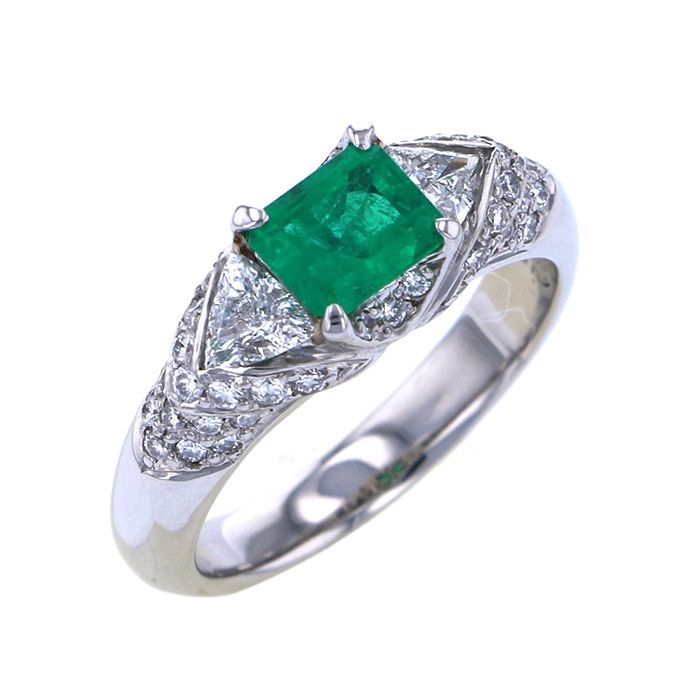 鮮やかな緑色の輝きが特徴のエメラルド(5月の誕生石)は、和名で「翠玉」や「緑玉」と呼ばれ、癒しと愛を象徴する宝石です。透明度が高く、色味が均一で濃いエメラルドほど価値が高いとされます。また、エメラルドはインクルージョン(内包物)が多い石として知られており、これを「ジャルダン(庭)」と呼び、天然の証としてむしろ価値とされています。クレオパトラが愛した宝石としても有名です。