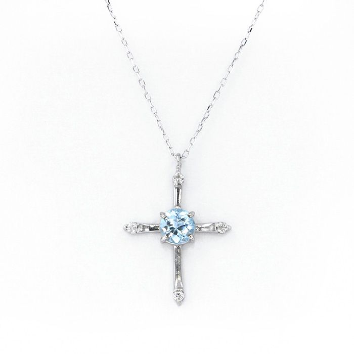 K18ホワイトゴールド アクアマリン ダイヤモンド ネックレス
