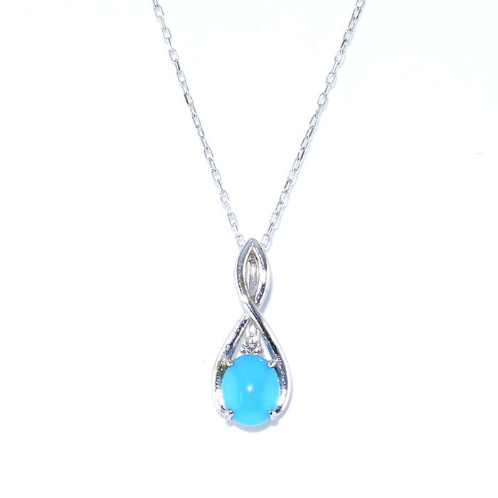 K18ホワイトゴールド トルコ石 ダイヤモンド ネックレス