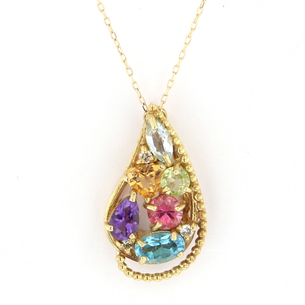 K18イエローゴールド ブルートパーズ ダイヤモンド ネックレス