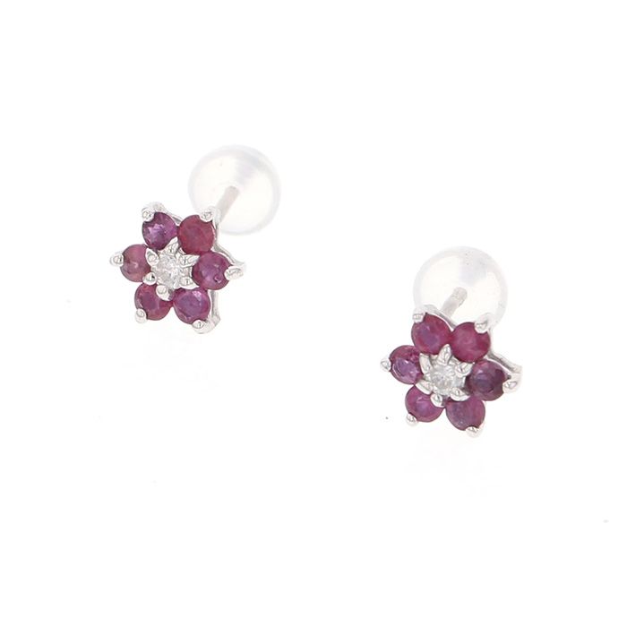 K18ホワイトゴールド ルビー ダイヤモンド ピアス