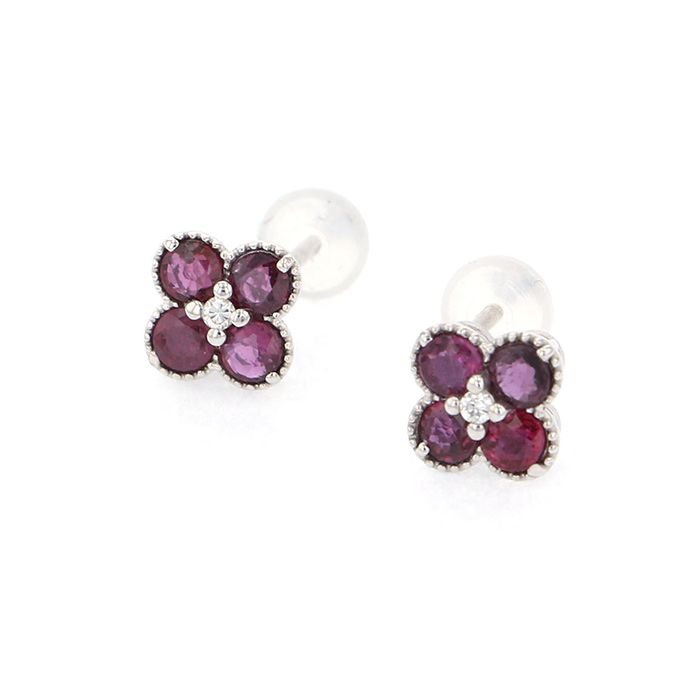 K18ホワイトゴールド ルビー ダイヤモンド ピアス