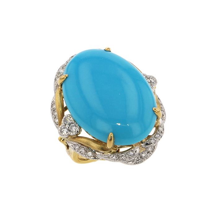 プラチナ K18イエローゴールド トルコ石 ダイヤモンド リング
