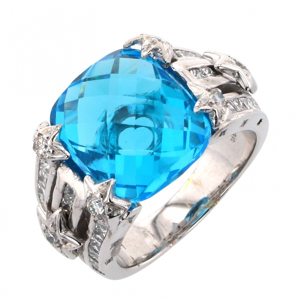 K18ホワイトゴールド ブルートパーズ ダイヤモンド リング