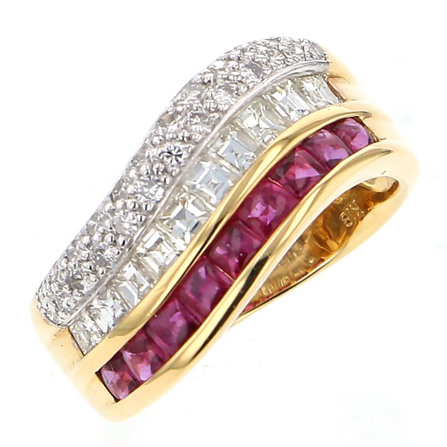 K18イエローゴールド K18ホワイトゴールド ルビー ダイヤモンド リング