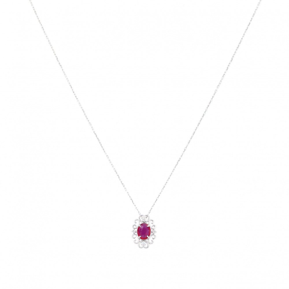 K18ホワイトゴールド ルビー ダイヤモンド ネックレス