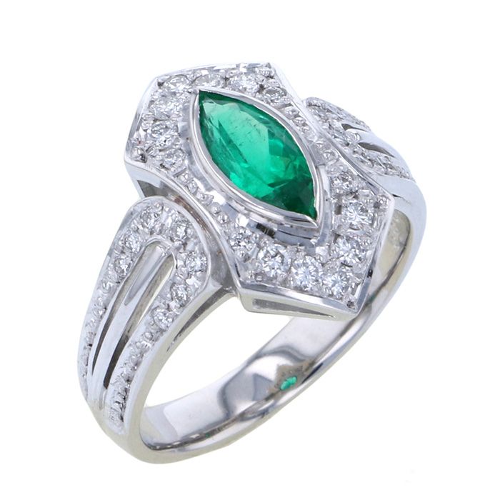 鮮やかな緑色の輝きが特徴のエメラルド(5月の誕生石)は、和名で「翠玉」や「緑玉」と呼ばれ、癒しと愛を象徴する宝石です。透明度が高く、色味が均一で濃いエメラルドほど価値が高いとされます。また、エメラルドはインクルージョン(内包物)が多い石として知られており、これを「ジャルダン(庭)」と呼び、天然の証としてむしろ価値とされています。クレオパトラが愛した宝石としても有名です。
