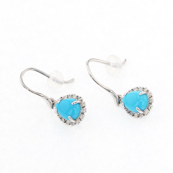 K18ホワイトゴールド トルコ石 ダイヤモンド ピアス
