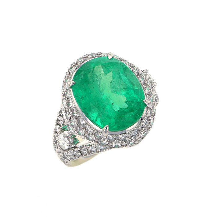 鮮やかな緑色の輝きが特徴のエメラルド(5月の誕生石)は、和名で「翠玉」や「緑玉」と呼ばれ、癒しと愛を象徴する宝石です。透明度が高く、色味が均一で濃いエメラルドほど価値が高いとされます。また、エメラルドはインクルージョン(内包物)が多い石として知られており、これを「ジャルダン(庭)」と呼び、天然の証としてむしろ価値とされています。クレオパトラが愛した宝石としても有名です。
