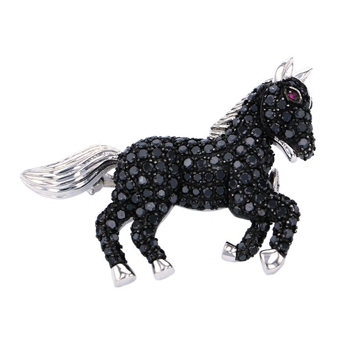プラチナ900 ブラックダイヤ ルビー ブローチ