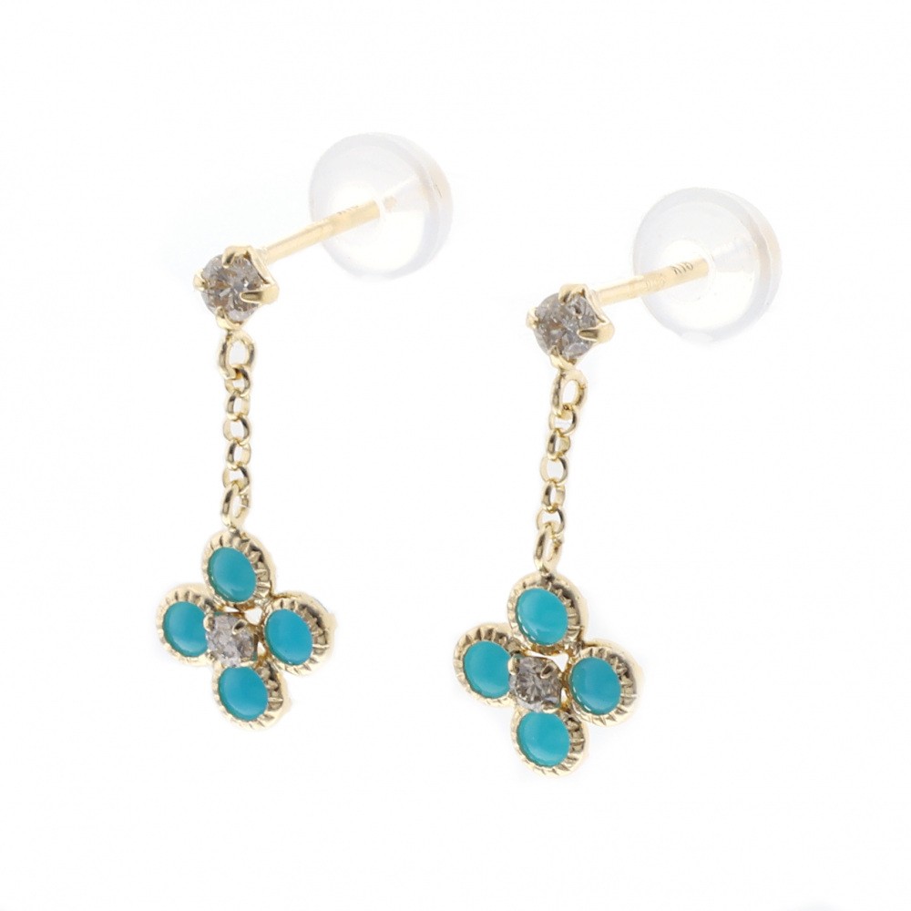 K18イエローゴールド トルコ石 ダイヤモンド ピアス