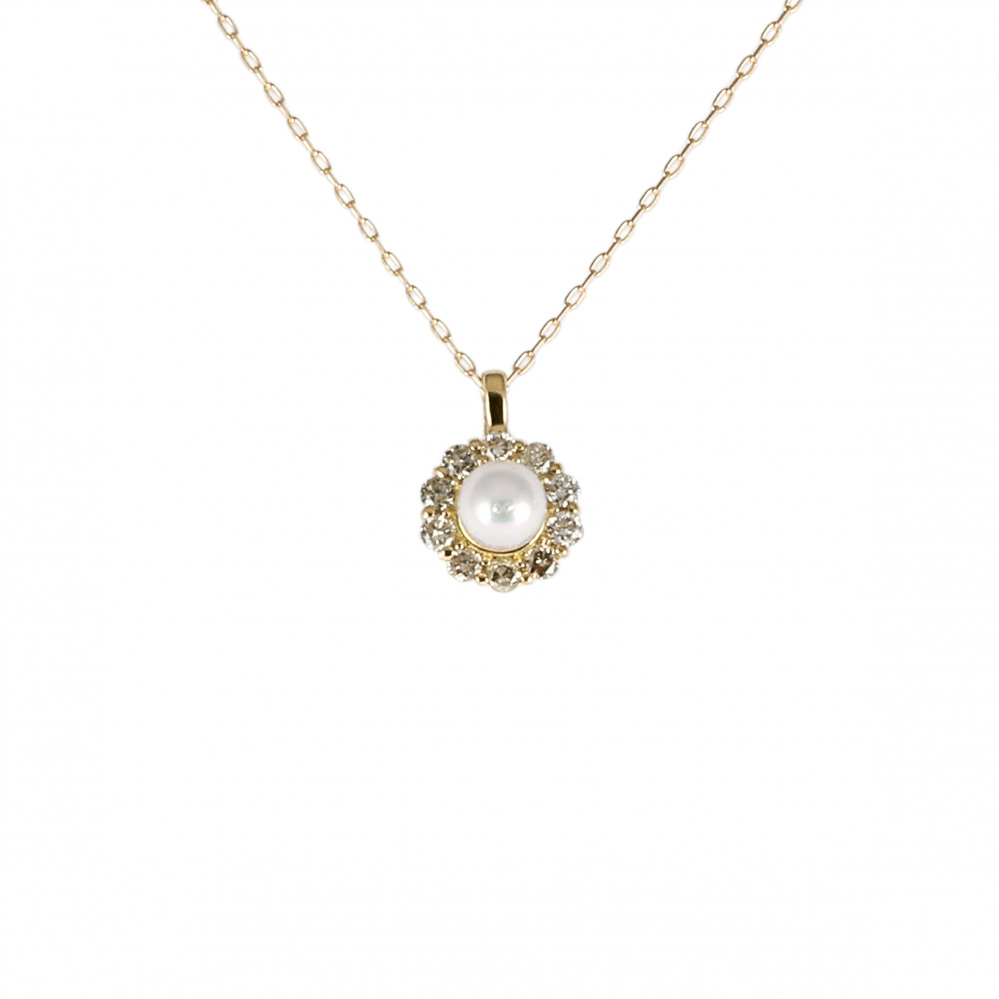 K18イエローゴールド パール ダイヤモンド ネックレス