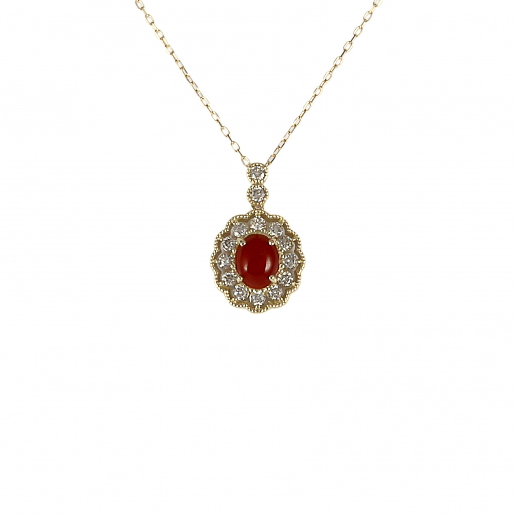 K18イエローゴールド サンゴ ダイヤモンド ネックレス