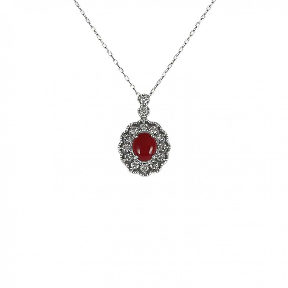 プラチナ850 プラチナ950 サンゴ ダイヤモンド ネックレス