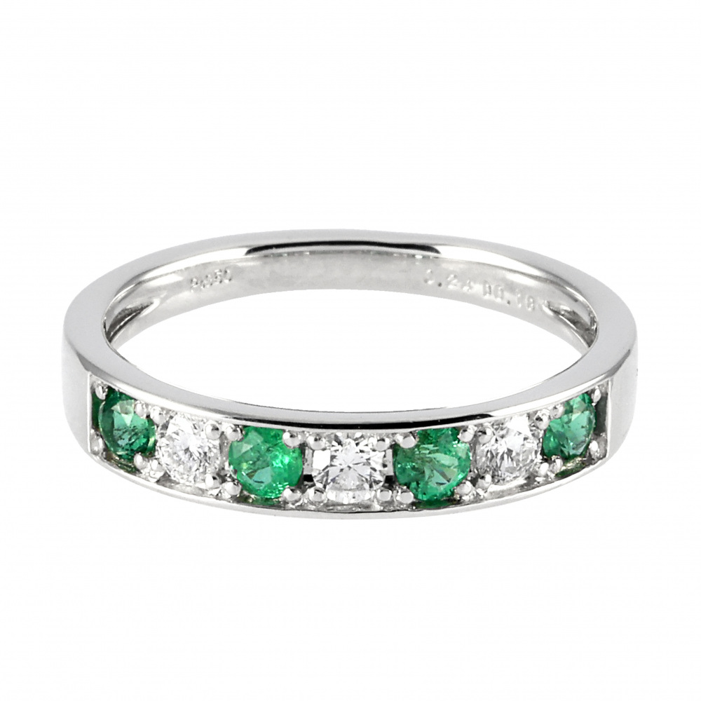 鮮やかな緑色の輝きが特徴のエメラルド(5月の誕生石)は、和名で「翠玉」や「緑玉」と呼ばれ、癒しと愛を象徴する宝石です。透明度が高く、色味が均一で濃いエメラルドほど価値が高いとされます。また、エメラルドはインクルージョン(内包物)が多い石として知られており、これを「ジャルダン(庭)」と呼び、天然の証としてむしろ価値とされています。クレオパトラが愛した宝石としても有名です。