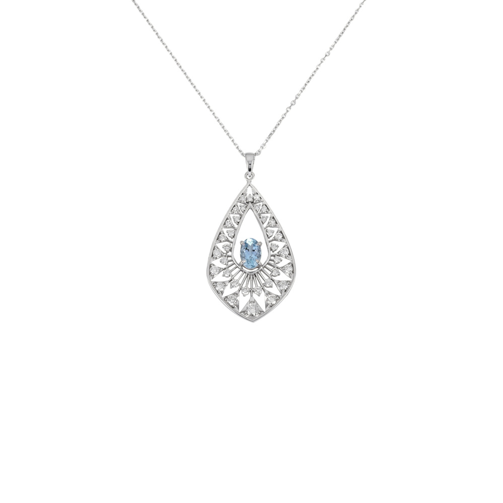 K18ホワイトゴールド アクアマリン ダイヤモンド ネックレス